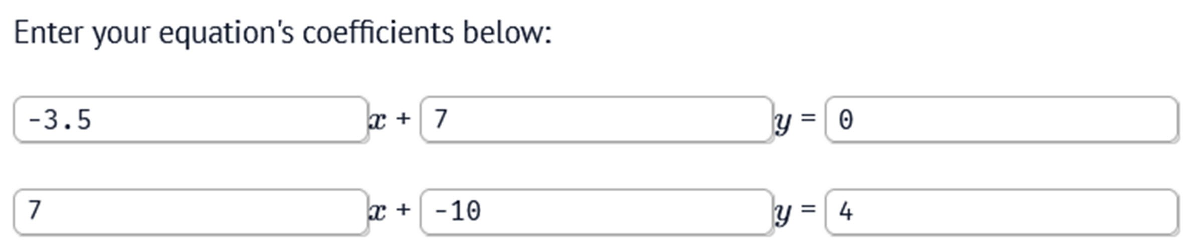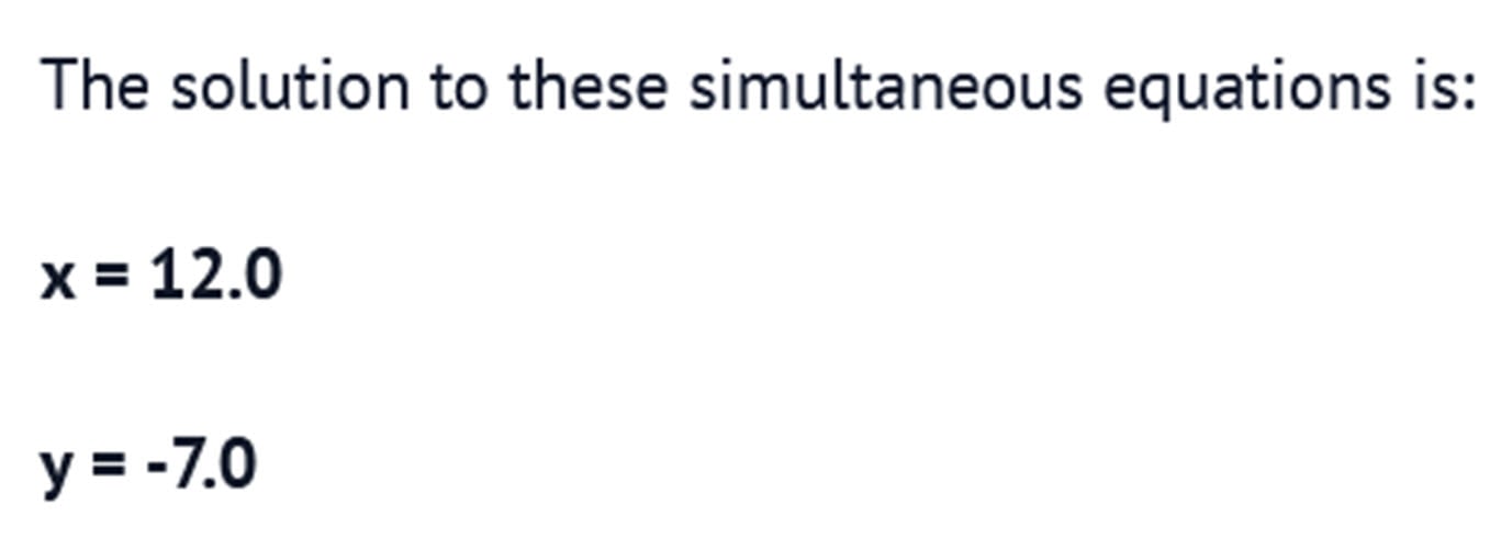 You could have seen the solution by adding solution as the last line of code, and marimo would have printed array([12., -7.]) above your code cell. The first element tells you that x = 12, while the second tells you that y = -7. Unfortunately, this approach isn’t very user-friendly, and there’s a better way.